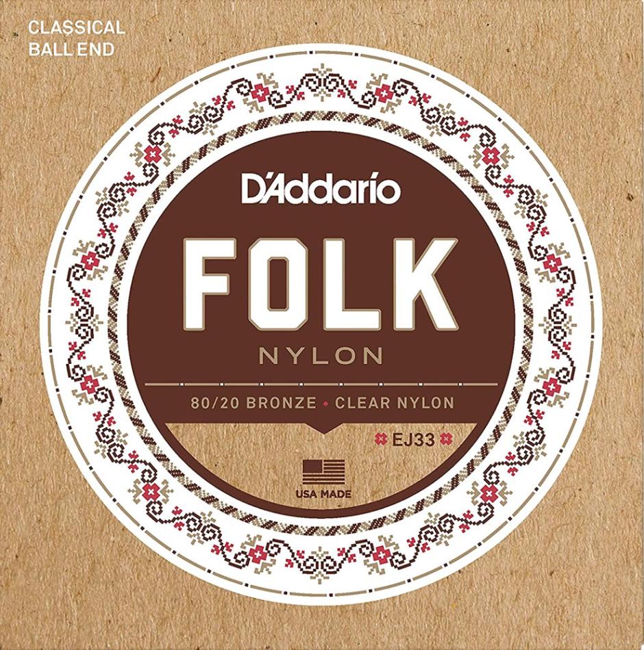 D'Addario / Folk Nylon EJ33 80/20 Bronze on Nylon Clear Trebles Ball End 28-45
